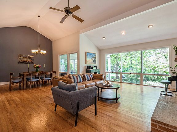 Amazing Mid-Century Modern home that will wow you with the gorgeous views of the lush back yard. The soaring vaulted ceilings create a large open space, great for entertaining. The pretty kitchen will also wow you with the views of the front yard of this oversized 101x129 lot. The kitchen was recently remodeled with white cabinets and granite counters. There are 4 bedrooms-3 up and 1 on lower level. Handsome 1st floor wood paneled office could also work as a playroom or den. Awesome screened in porch is surrounded by gardens. The large, bright lower level family room steps out to a lovely patio and huge back yard. The 2.5 baths have recently been updated, 2nd floor windows replaced with Pella windows, all sliding glass doors were replaced in recent years. Beautiful hardwood floors throughout with carpet in the family room on the lower level. Attached two car garage. Great beach, park district, schools and fun downtown Wilmette restaurants!
