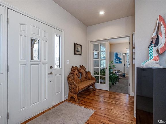 Prepare to be delighted by this immaculate newer ranch in a great location, surrounded by rural homes in an urban setting with the Highline Canal close by! As you pull up to the house on a corner lot you will immediately notice the handsome curb appeal with charming front porch and note that garage access is from the cul-de-sac at the rear of the home. Once inside you will appreciate the vaulted ceilings and hardwood floors in the spacious great room that offers a gas fireplace with stacked stone surround and plenty of ambient light. The open layout flows perfectly into the beautiful kitchen with staggered Tharp custom alder wood cabinets and a walk in pantry for additional storage. Slab granite countertops are complimented perfectly by the tile backsplash and stainless steel appliances that include an in wall oven and microwave along with the black gas cooktop at the expansive island. Lighting above and under the cabinets add ambience in addition to the LED lighting throughout. Imagine enjoying meals in the dining room with access to the east facing no maintenance deck that overlooks your private outdoor living space with custom gate. Take a deep breath and relax to the sight and sound of the unique water feature embedded in the raised garden with Arizona Flagstone walls and extended seating. Cobblestone patio in the courtyard provides plenty of space for dining al fresco and entertaining around the built in gas limestone firepit. Repose to your primary suite that hosts a five piece bath with Kohler tub, travertine floors and large walk in closet with wood shelving. South facing office and secondary bedroom utilize the full hall bath. Spacious laundry boasts a mud room feel and opens to the 3 car tandem garage with epoxy floor and enough space for a lift! New roof in 2019, new exterior paint in 2020, garden level basement has room to expand. Near CommonGround golf course, shopping at Lowry and The Gardens on Havana, plus hiking and biking along the Highline Canal.