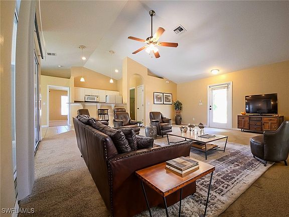 Welcome to this charming single-family home in a highly sought-after neighborhood in Cape Coral. This spacious 3-bedroom, 2-bathroom home offers the perfect blend of comfort and convenience. Move-in ready, this home provides peace of mind for years to come with new carpeting, a roof replaced in 2023, and an AC system replaced in 2024. Ideally located, you'll enjoy easy access to shopping, dining, and grocery stores, plus just 15-20 minutes to downtown Cape Coral or Fort Myers, making every day errands a breeze. Whether you're relaxing in the cozy living spaces or embracing the outdoor Florida lifestyle, this home is perfect for families or anyone looking for a comfortable retreat. Don’t miss the opportunity to make this house your new home! **NOTE: Some pictures are virtually staged.