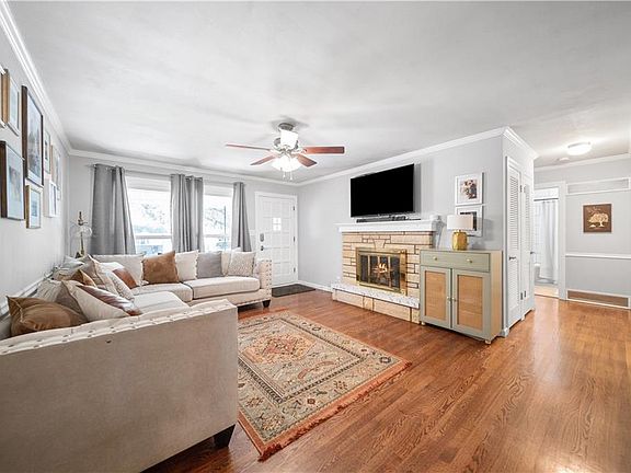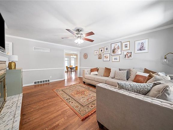 This charming & updated ranch is ready for it's next owner! Enter from the cute front porch to the living room with hardwood floors & cozy fireplace. The living room flows seamlessly into the large dining & kitchen area with updated cabinets & appliances! There are three generously sized bedrooms including a primary suite with it's own half bath! The flat backyard features a covered patio and plenty of room to entertain! The garage can easily fit two cars & the large unfinished basement is great for storage or can be finished for more living space. You will love being within walking distance to the elementary school, middle school & neighborhood park. Other updates include re-tiled shower, thermal windows, & new sewer line. Don't miss this gem!
