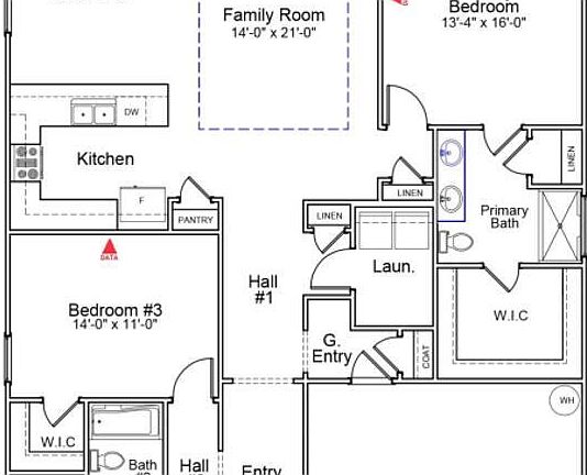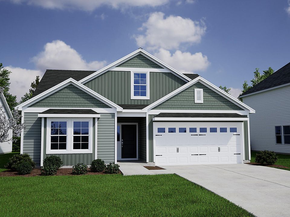 This Durham is a three-bedroom, two-bathroom single story home with an open floor plan. The kitchen has generous solid surface countertop space and an eat-in area that opens to the great room with fireplace. The primary bedroom is split from the secondary bedrooms and features a large walk-in closet, dual sinks and an over-sized linen closet. Both secondary bedrooms also feature walk-in closets. The laundry room is centrally located and surrounded by even more linen closets. There is a garage entry room where there is plenty of storage in the coat closet and even a nook that could be used as a landing space for all of your items at the end of the day.