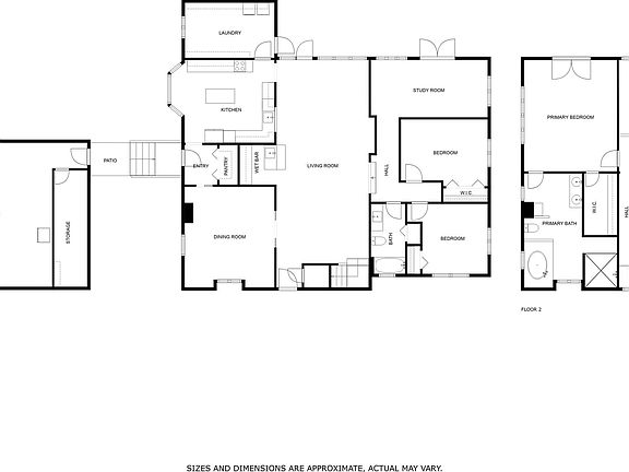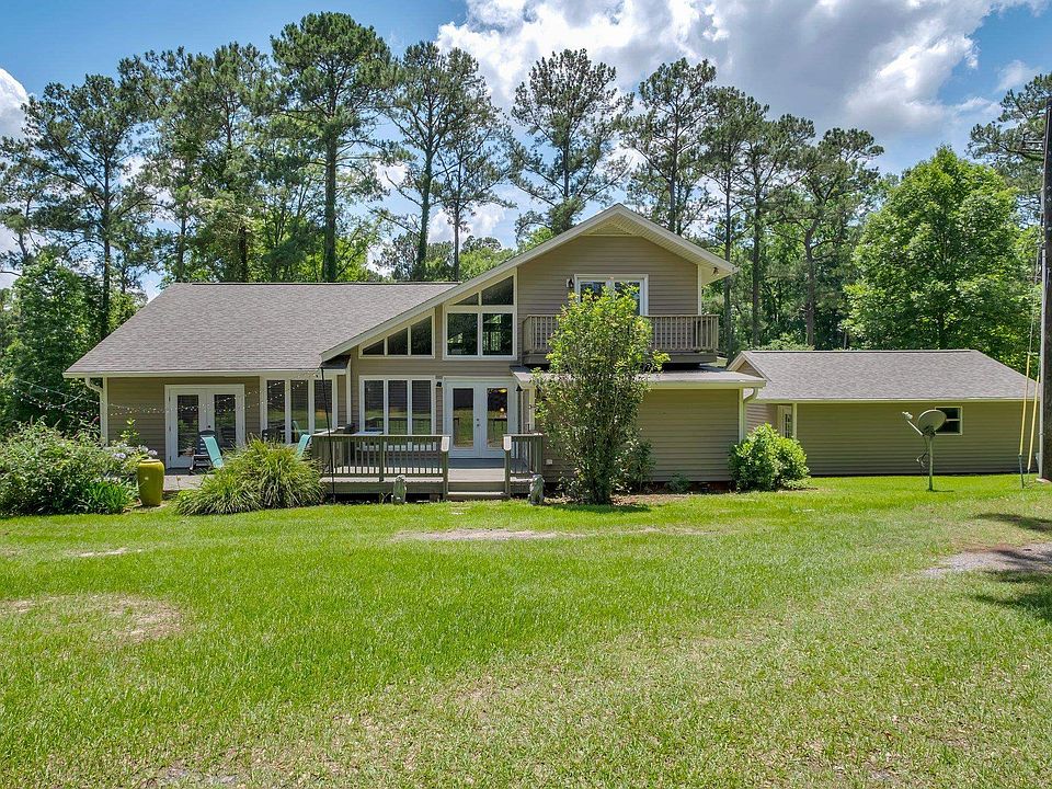 Welcome to your private oasis in the woods! This charming three-bedroom, two-bathroom residence is situated on a five-acre lot, nestled away from the main road and accessible through a gated entrance. You are welcomed into the home by warm, inviting interior featuring natural wood tones, cozy built-ins, and a stylish wet bar perfect for entertaining guests. The master bathroom has been beautifully renovated and features a soaking tub and a spacious walk-in shower. This property boasts additional amenities including a 2-car garage, a storage shed and a former chicken coop turned outbuilding. With boundless potential, this parcel presents a multitude of opportunities for its future owner.