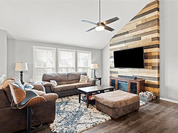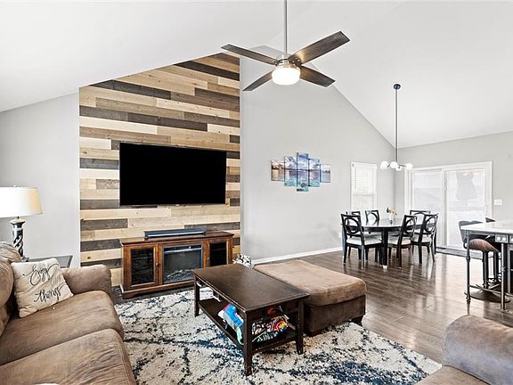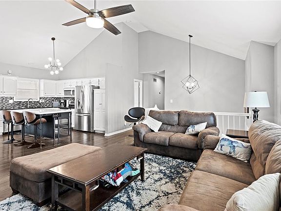 This thoughtfully updated home features an open floor plan with vaulted ceilings and wood flooring throughout. The kitchen offers a large island, granite countertops, and stainless steel appliances—perfect for both cooking and entertaining.