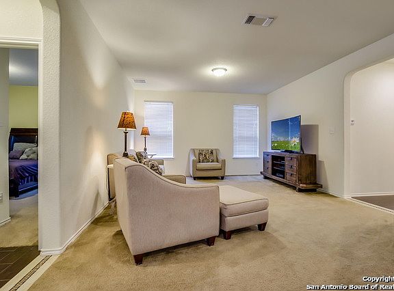 Gorgeous Single Story 3 side Brick, Fastest growing area in San Antonio. *Gourmet kitchen with built in Double Ovens, Cooktop stove, Travertine Backsplash with inserts, Raised Breakfast bar wrapped in Travertine stone, Designer Counter Tops with 42 inch Cabinets and stainless steel appliances ** 9 foot ceiling* New floors with ceramic tile, Marble and Travertine Diamond design in entry*rectangle ceramic tile for Covered Patio with outdoor speakers, ceiling fan, and TV area.. Awesome backyard Will not LAST!