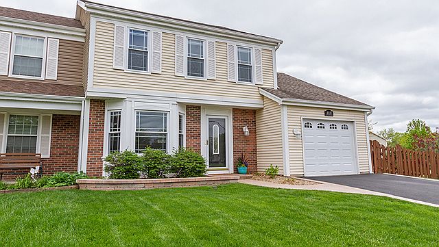 Move in ready! Updated Marlowe model in desireable Cambridge Pointe subdivision! Situated on prime corner lot with extensive landscaping, expanded driveway & stamped walkway! Living room with huge bay window allows for tons of natural light! Gourmet kitchen features an abundance of wood cabinetry, upgraded counters, subway tile backsplash, breakfast bar, & overlooks huge dining/family room with built in shelving! Renovated powder room with wood vanity! Master plus 2 additional bedroom boast soaring ceilings! Modern hall bath with white vanity! Fenced backyard shows off huge deck, new shed & room to roam! Other features include fresh, neutral paint throughout & newer windows! Great location~ walking distance to Cambridge Park, Carol Stream pool & easy access to County Farm Rd! Don't miss out!