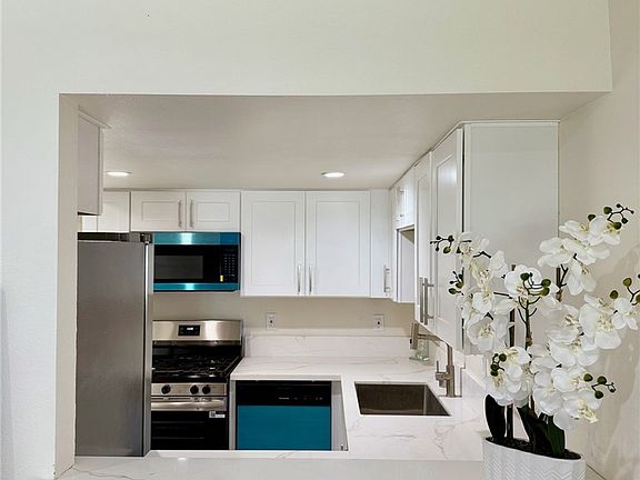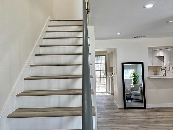 Back on market! Buyer could not perform! Welcome to this beautifully remodeled townhouse-style condo, nestled within a secure gated community in the heart of Compton. This spacious two-bedroom, one-and-a-half-bath home features a thoughtful layout, with both bedrooms and the full bathroom located upstairs, and a convenient half bath on the entry level. Step inside to luxury wood-style vinyl flooring and recessed lighting throughout. The fully renovated kitchen boasts brand-new shaker cabinets, quartz countertops, and stainless steel appliances — including a refrigerator, stove, microwave, and dishwasher. Just off the kitchen and dining area, enjoy a private patio with a storage room, perfect for relaxing or entertaining. Upstairs, you'll find the laundry room for added convenience. This home also features a brand-new HVAC system providing central air and heat — ideal for year-round comfort. The community is beautifully maintained, with lush landscaping visible right from your front door and windows. Don’t miss your chance to fall in love with this move-in-ready gem!