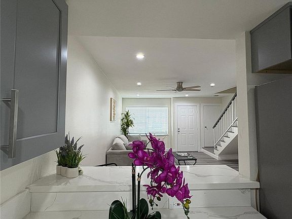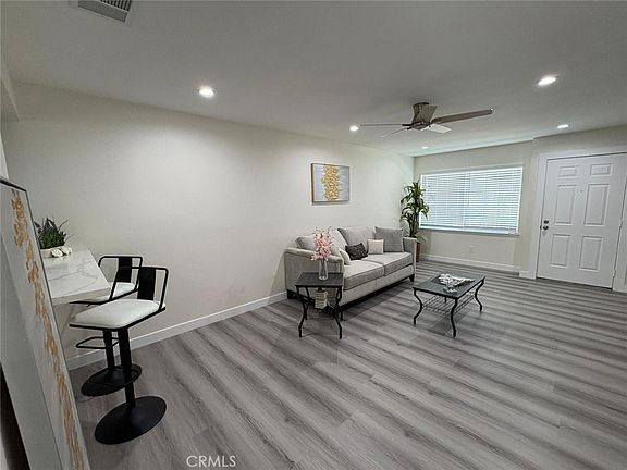 Here is your chance to own this beautifully remodeled townhouse-style condo, nestled within a secure gated community in the heart of Compton. This spacious two-bedroom, one-and-a-half-bath home features a thoughtful layout, with both bedrooms and the full bathroom located upstairs, and a convenient half bath on the entry level. Step inside to luxury wood-style vinyl flooring and recessed lighting throughout. The fully renovated kitchen boasts brand-new shaker cabinets, quartz countertops, and stainless steel appliances — including a refrigerator, stove, microwave, and dishwasher. Just off the kitchen and dining area, enjoy a private patio with a storage room, perfect for relaxing or entertaining. Upstairs, you'll find the laundry room for added convenience. This home also features a brand-new HVAC system providing central air and heat — ideal for year-round comfort. The community is beautifully maintained, with lush landscaping visible right from your front door and windows. Don’t miss your chance to fall in love with this move-in-ready gem!