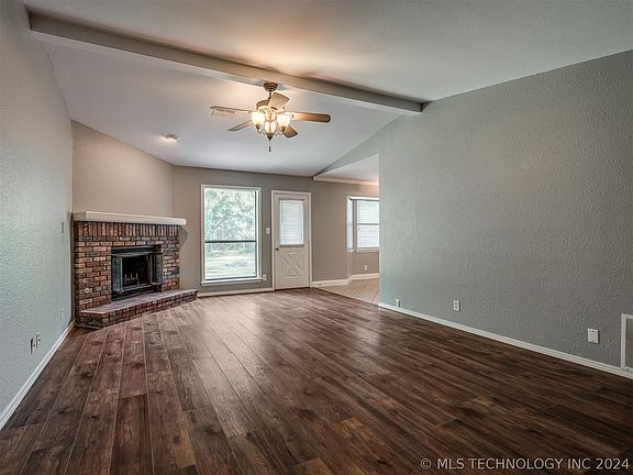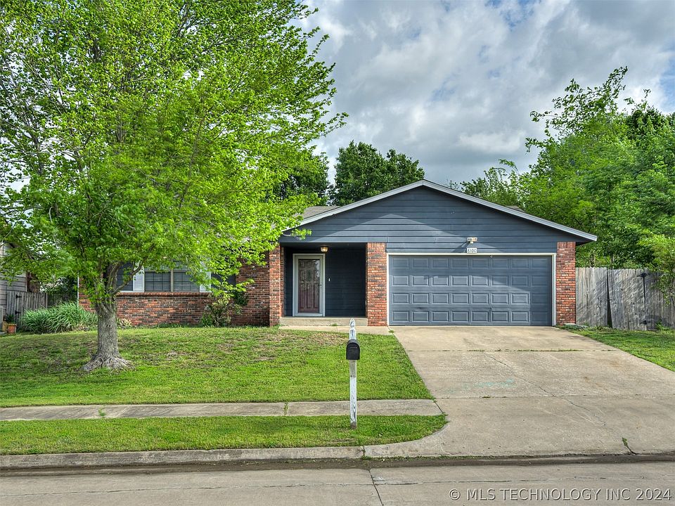 Come check out this single story home in Ridgeway Heights I in Broken Arrow Schools. Vaulted living room with a brick fireplace. Large kitchen open to the dining room. Solid surface flooring, Tile in the kitchen/dining. Primary suit with a walk in closet and good sized bathroom with a shower. Fully fenced yard, A must see.