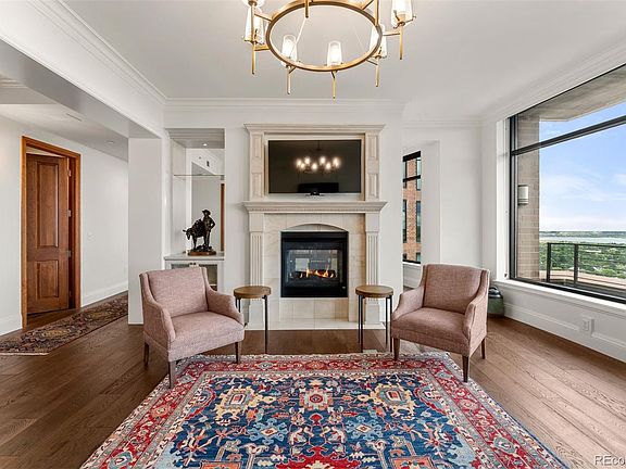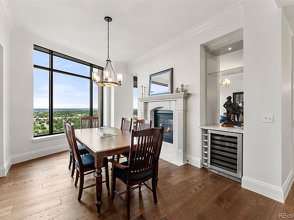 Soaring high above the Denver Tech Center, Residence 2301 at Penterra Plaza offers a rare blend of refinement, prestige, and elevated condominium living. This southeast-facing corner residence is framed by floor-to-ceiling windows with sweeping views of Cherry Creek Reservoir and beyond. Morning light fills the interiors while the southern and eastern exposures keep the home naturally cool throughout the day. An extensive renovation elevates the home with wide-plank Walnut hardwood flooring, designer lighting, fresh paint, and UV-protective shades with blackout screens in the bedrooms. The chef’s kitchen is both elegant and functional, showcasing striking new countertops and backsplash, premium appliances, updated fixtures, and a converted walk-in pantry. The primary suite is a serene retreat with a private sitting area, an oversized walk-in closet, and a spa-inspired bath reimagined with custom cabinetry, a glass shower, and luxury finishes. Expansive living and dining rooms, each anchored by a fireplace, connect seamlessly to a warm family room and private office, while the living room opens directly to a private balcony where views stretch endlessly across Cherry Creek Reservoir and the eastern plains. Residence 2301 includes two deeded parking spaces and two storage units. Penterra Plaza stands as the premier high-rise in DTC, offering unmatched amenities including a state-of-the-art business center, fully equipped fitness center, elegant community room with catering kitchen, and an expansive party terrace. Residents enjoy concierge service, secured parking, guest suites, and upcoming enhancements, including a redesigned lobby, new elevators, and a signature on-site restaurant. With effortless access to the area’s best dining, shopping, and entertainment, this home delivers the perfect blend of privacy, prestige, and ease.
