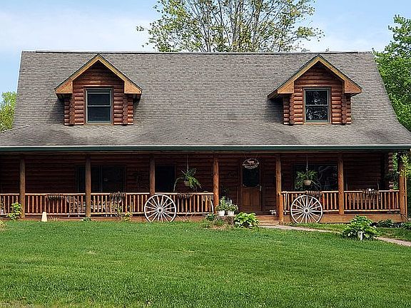 4,200 total sq.ft. two story log home built in 2001 with a walk-out basement. The home has a Rainbow covered seamless gutter system. Main bedroom is on main floor with roomy walk in closet and large bathroom with a whirlpool spa tub, shower and double sink. Laundry and ½ bath are also on the main floor. The main floor great room has cathedral ceilings and hardwood floors. The kitchen sports hickory cabinets and granite counter tops. The dining room opens out to the walk around deck overlooking a pond, garden, windmill, pastures and greenhouse. The living room area has a rock fireplace with a natural gas fireplace insert. Upstairs has two roomy bedrooms with walk-in closets and a full bathroom. One upstairs bedroom has its very own porch. The basement has a Vermont casings natural gas fireplace and there is another bedroom in the basement. The basement has lots of light due to two large picture windows and a glass double door that opens out onto a beautiful, tiered patio with a firepit. House comes fully or partially furnished as well!
