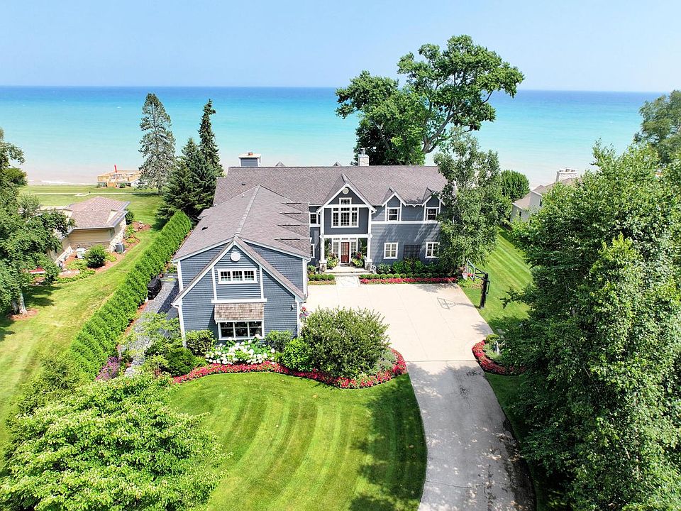 Step inside this Nantucket-style masterpiece on Beach DR and prepare to be swept away. With every detail designed to impress, this home is as glamorous as it is inviting. The chef's kitchen opens to a soaring great room drenched in light, where panoramic lake views steal the show. Formal LR and DR are anchored by a dramatic stone fireplace equally perfect for grand entertaining or intimate evenings. LL redefines indulgence with a sleek 2nd KIT, a movie theater that rivals the best cinemas, and a fitness studio. The primary suite is pure decadence complete with a FP, spa-worthy bath, and a boutique-style closet designed for the pages of a magazine. A charming guest house completes the picture, offering friends and family a retreat of their own.This is Beach Drive at its most captivating.