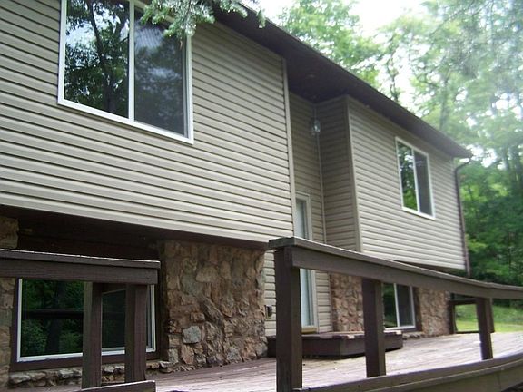 2 parcels combined for a total of 6.13 acres. Private setting. Kitchen and family room on the lower level with bedrooms and baths on the upper level. Large front deck area to enjoy the changing seasons.
