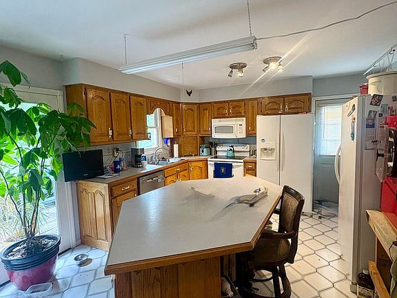 - Features: Country Kitchen, Ceramic Tile Flooring, Eat-in Kitchen, Kitchen Island, Wood Cabinets, Walk-Out Access