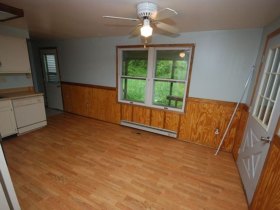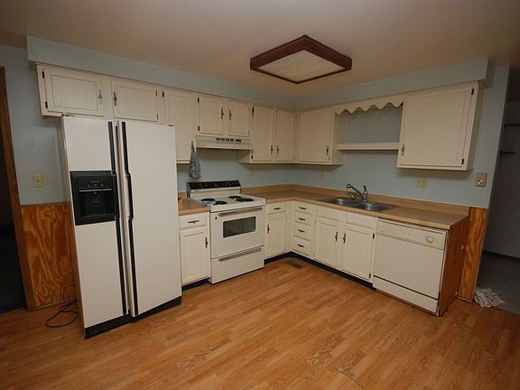 Ranch house with large living room with ceiling fan and bay window, large eat-in kitchen with all appliances and laminate flooring, 3 enormous bedrooms and 2 full bathrooms. including owner's suite with 2 double closets and a smaller closet, nice main bath with skylight. 2 car attached garage, paved driveway and covered screened in rear porch. Situated on almost one acre, partial fenced in yard, fairly private lot.