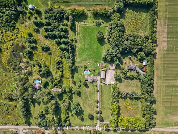 Welcome to a rare 10-acre country retreat for horse lovers just minutes from London, Lambeth, and Highways 401 & 402. This raised ranch offers 5 bedrooms, 3 full bathrooms, and a layout designed for both family living and equestrian enthusiasts. The kitchen, complete with a butlers pantry and main floor laundry, overlooks the back paddocks, while the front living room captures peaceful views of horses out front. The walk-out lower level opens to a pool, hot tub, and indoor sauna, creating a true resort feel. A show-stopping feature is the expansive room with cathedral ceilings that opens directly to the pool area. This versatile space could easily become a private granny suite or serve as an entertainment hub, with a separate basement nearby thats ideal for a games room or extra storage.Horse lovers will appreciate the extensive upgrades including two oversized stalls with horse mattresses, water access, a new tack room, secure flex fencing, fire extinguishers, French drains, and a run-in. The paddocks, dry lot, round pen, and stable connect seamlessly, allowing horses to roam from the front to the back of the property, with pathways and woodland potential for riding trails. A 25x25 metal drive shed provides hay storage, while open space offers room for gardens, a chicken coop, or solar panels. The land also includes apple and pear trees along with 100 black walnut trees that can be harvested in the coming years for potential profit.Recent updates include a new furnace, electrical panel, EV charger, stove, and washer (all 2025), air conditioner (2022), hot tub (2020), pool liner and pump (2018), and 25-year shingles installed in 2014. A triple car garage and updated shop with space for woodworking, welding, or hobbies add even more flexibility. Private and peaceful yet incredibly convenient, this property is more than a home it's a lifestyle, offering the very best of both worlds.