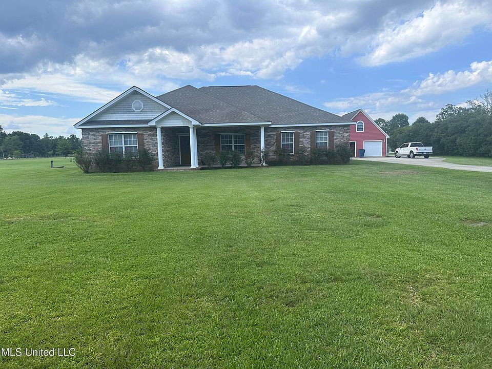 Stately home on almost four acres ,cleared , landscaped and level for a pool! Every room in this home is large! Kitchen over flows into a large dining/gathering area. The living/great room is perfect for those holiday festivities and wait until you see the laundry room! Large master with a walk in shower with dual shower heads. This split floor plan has guest rooms sharing a bath and each room has an oversized deep closet. Inside the carport is a storage unit with shelving. The detached garage serves this owner as a shop with all the bells and whistles, and has an upstairs room that is laid out as a game room or a get away room or just plain storage. This property is located in the East Central School District and about 20 minutes to Mobile, Alabama or 20 minutes to Pascagoula, Ms. Make your appointment today!
