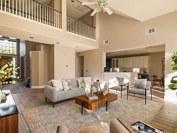 Beautiful five bedroom home in Grandview Hills on an oversized 0.26-acre corner lot. The main level features a spacious dining room with a bar that flows into the kitchen, a private study with French doors, and a welcoming central living area. The kitchen includes an island and breakfast nook and opens to the main living space for easy daily living and entertaining. The main-level owner’s suite offers a recently remodeled shower and tub, while the vanity awaits the next owner’s personalized touches. The second level includes a generous playroom with four comfortable secondary bedrooms and two bathrooms, providing excellent flexibility for family, guests, or work-from-home needs. The outdoor living space features a covered patio, irrigation system, gutters, and professionally landscaped grounds framed by mature oaks.