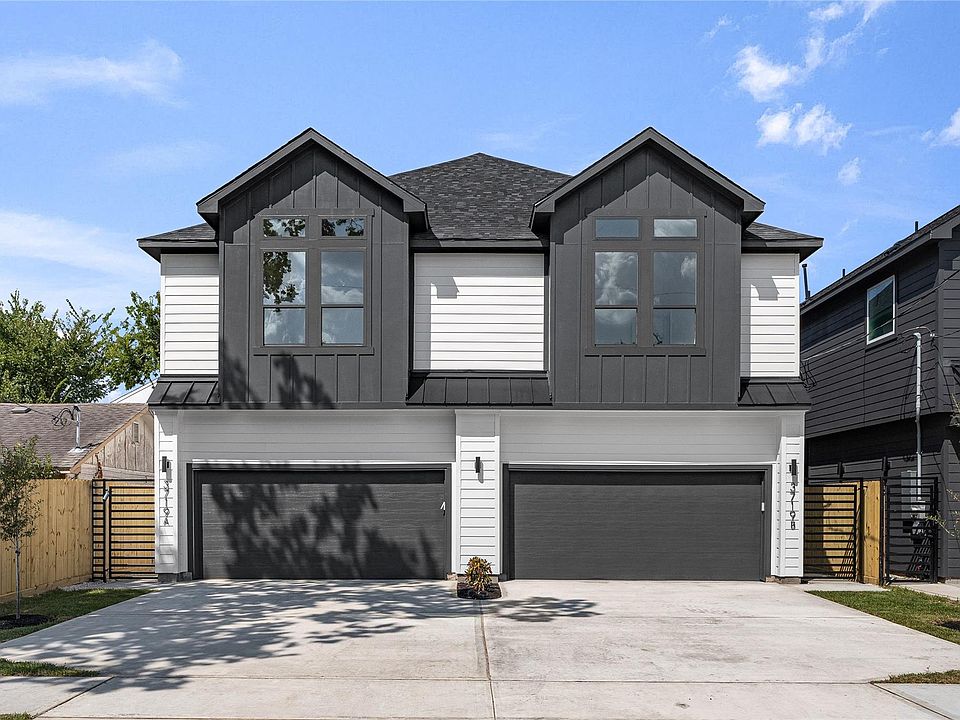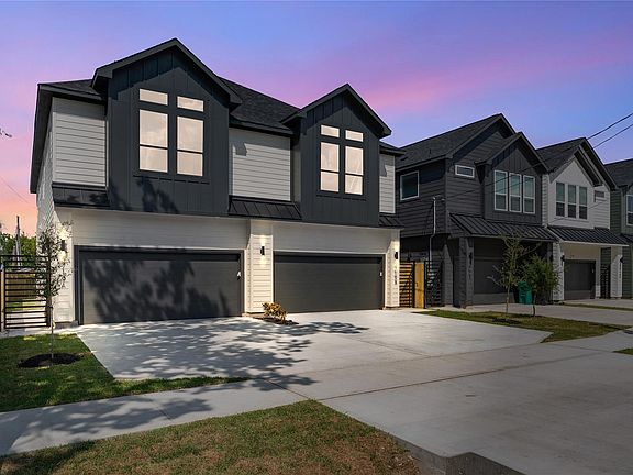 Nima homes brings a rare duplex with garages back to the market as the Lydia project selling within days on the market brings back buyer/investor demand. This rare duplex offers 1,779 SF per unit, TWO-CAR GARAGES, and an OVERSIZED BACKYARD. Just minutes from the Texas Medical Center, Museum District, and Downtown, it blends standout design with unbeatable convenience and smart investment potential. Inside: open layout, sng ceilings, tons of natural light, and premium finishes. The kitchen features sleek European flat-panel cabinets, quartz countertops, and a rare dining space. The spacious primary suite boasts high ceilings, a luxe ensuite with dual sinks, frameless glass shower, soaking tub, and walk-in closet. Additional bedrooms flex as guest rooms or offices. Best part? You can buy TWO HOMES under one primary loan—an ideal path to house hacking and homeownership.