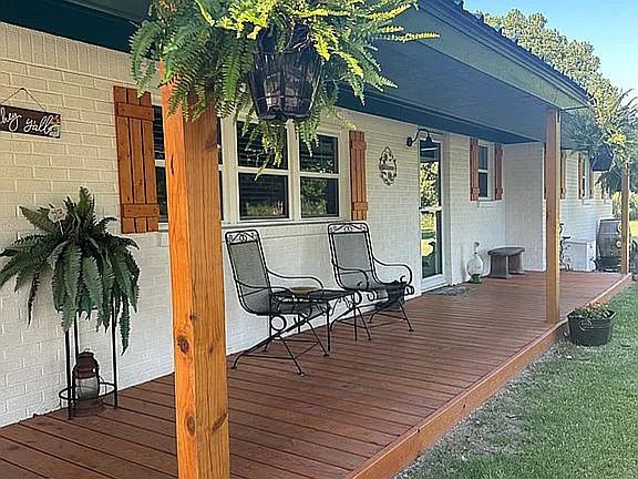 Motivated Seller! 2 Homes-One great price! This is a must see property. Multigenerational living or lots of possibilities on second home. Well kept property at nearly 6 acres (5.93) with 2 water wells. Main home is brick sided with 1370 sq ft. 3 bedrooms, 2 full bathrooms, large living and dining area. Ease of care with laminate floors in living, hall and all bedrooms. Ceramic tile adorns the dining and kitchen area. Interior storm shelter with private exterior entrance. 2 car covered carport with an attached storeroom. Beautiful front porch! New stainless steel refrigerator and stove New water heater Second home is a 2021 Solitaire 3br 2ba Open floor plan at 1152 sq ft Lg front deck and storage building included! Barn has two tack rooms or use for extra storage. Double sided open front shed. Large storage container with rollup door. Spacious fenced in area. As is Lots of shade trees and room to roam. ALL OFFERS CONSIDERED!!