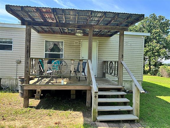 Discover the charm of this beautifully maintained 1700 square foot home set on a sprawling 30-acre fully fenced property. This picturesque estate features two ponds, with the larger one stocked with bass and perfect for easy fishing. With a storm cellar, while multiple outbuildings offer ample storage space. The property includes a well-equipped corral with a dedicated waterline, ensuring convenience for animal care. Additionally, there is an RV spot complete with water and electric connections. The old tin barn adds a touch of rustic appeal and includes an enclosed area previously used for chickens and puppies. Inside the home, the fridge, stove, and dishwasher are included. With rural water service and meticulous upkeep, this property is a rare find. Don't miss the chance to make it yours before it's gone!