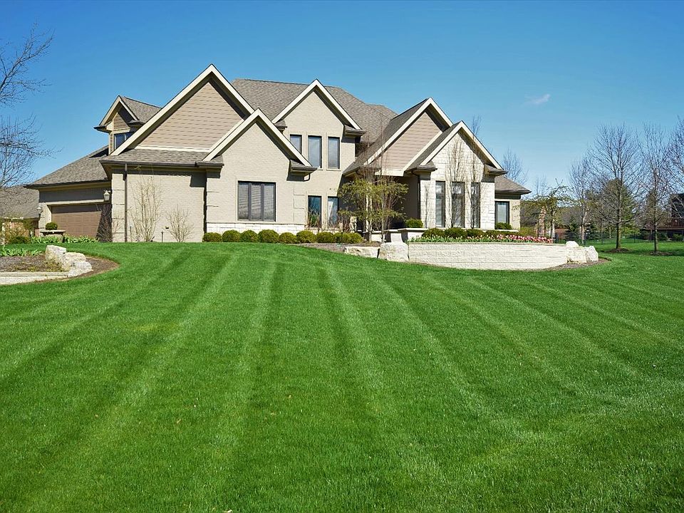 Custom Quality has been meticulously maintained inside and out. Uncommon amenities and a well planned layout for convenient comfortable living. Situated on an attractive corner lot that is meticulously landscaped. Inground irrigation system. Kitchen is open to cozy family room, granite counters, soft close cabinetry, pantry and more. Main level master bedroom w/huge walk in closet , cove ceiling and a well appointed bath with access to rear patio. Upper level includes 3 large bedroom (one w/private bath and 2 others share a 'buddy bath'). Grand entry staircase up and an additional 'back' staircase. Incredible basement was recently completely redone offers large rec room, stone bar area, theatre room, 5th bedroom and a full bath. 2 HVAC systems (one for upper level, other for remainder of home). 4 car heated garage. Attractive paver entry, driveway and patio.Lots of natural light makes this home bright and offers great exterior views. Must see to enjoy all this home has to offer.