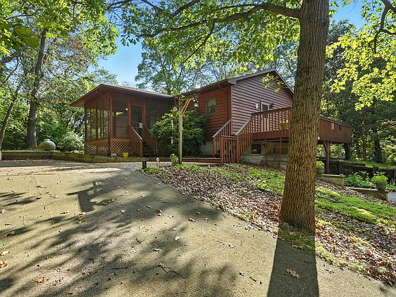 Welcome home to your private retreat on 3 scenic wooded acres! This peaceful property offers the perfect blend of nature and comfort with abundant wildlife and serene views all around. Step inside to find a spacious single-level layout featuring a large living room and kitchen that opens to a screened-in porch overlooking your beautiful grounds. The finished basement includes a workshop area, ideal for hobbies or projects. Outside, enjoy a wrap-around deck perfect for relaxing or entertaining. Car enthusiasts and hobbyists will love the massive 48x30 heated garage/workshop with full attic access, workbench, and extensive shelving. A true hidden gem offering both space and tranquility!