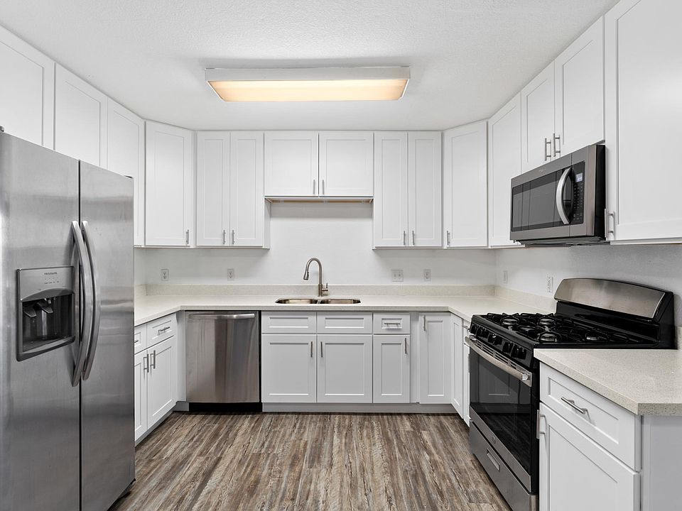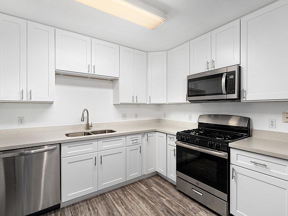 Located in Cherry Creek. Fully renovated in Feb of 2022 with new floor, new kitchen, new bathrooms, fresh paint inside/out, larger than average, single story 2 bedroom, 2 bath duplex in a great neighborhood. Large living/dining area. U-shaped kitchen with more work space, food pantry and breakfast area. Master bedroom has large bath with double sink and walk-in closet. NO CARPET, all vinyl plank floor, quartz countertops and stainless steel appliances. Private back yard with no homes behind. Gas/electric laundry hookups. Minimum FICO score 675. 12 months