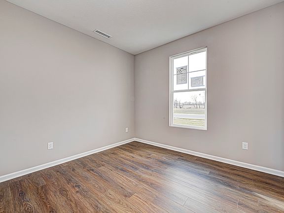The Palmetto floorplan, a 4-bedroom, 2.5-bathroom, adorned with horizontal siding and brick facade on the front, a covered porch entrance and 2-car garage, flanked by dusk-to-dawn coach lights. Entering the foyer, a formal living room is on the right. The foyer seamlessly transitions into an open concept kitchen, great room, and breakfast room. The kitchen boasts a central island with a 9'' deep stainless-steel sink, 42-inch-tall straight wall cabinets adorned with small colonial crown molding, and top-notch stainless steel Frigidaire appliances, including a microwave, dishwasher, and slide-in electric range. The breakfast room opens to a 12x10 covered patio through a sliding glass door. A hallway from the great room leads to a half bath featuring a single bowl sink 31.5-inch tall vanity and a standard toilet. This bathroom strategically separates the study and the mudroom. Ascending the stairs to the second level to welcoming loft. On either side are two spare bedrooms, each with walk-in closets. A full bathroom with a tub and shower combination, elongated toilet, single sink, and 31.5-inch tall vanity separates the second and third bedrooms, with the third room with walk-in closet. Continuing the journey across the second level, you'll find a laundry room with shelving above the washer and dryer and vinyl plank flooring. The spacious primary suite beckons with a walk-in closet and a luxurious bathroom featuring double sinks, a tall elongated toilet, a tiled shower with a 60'' framed glass door, and elegant ceramic tile accents. The second level is adorned with plush carpeting. Frist floor enhances the sense of space with 9' first-floor wall height 6 foot windows, and vinyl plank flooring. All countertops are adorned with 2 cm quartz. Whole house colonial trim and seagull light fixtures, coupled with energy-efficient LED lighting. The HVAC system is electric heat pump and digital thermostat. A 50-gallon electric water heater, coupled with a water softener bypass.