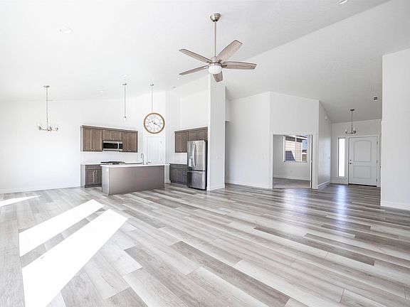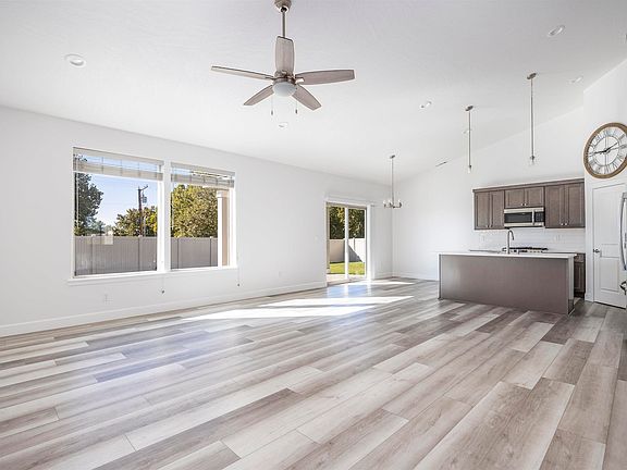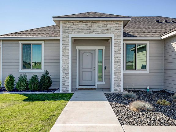MLS# 287903 Welcome home to this pristine 2021-built residence offering 1,938 sq ft of thoughtfully designed living space with 4 bedrooms and 2 bathrooms. Perfectly located near schools, parks, and amenities, this home combines comfort, convenience, and style. Step inside to an open floor plan featuring soaring ceilings, gorgeous laminate flooring, and large windows that fill the home with natural light. The kitchen is a true highlight with quartz countertops, a white subway tile backsplash, spacious island/breakfast bar, stainless steel appliances, beautiful cabinetry, and a large pantry. The adjacent dining space offers easy access to the expansive patio and backyard—ideal for outdoor dining and entertaining. The primary suite is a private retreat with French doors, ceiling fan, spacious closet, soaking tub, tiled shower, and dual quartz-topped vanity. Three additional bedrooms provide plenty of space, with large closets for extra storage, and a laundry room with utility sink and cabinets adds convenience. Outside, enjoy a fully fenced backyard with a gate, and a partially covered patio spanning the length of the home. The 3-car attached garage offers abundant storage and workspace for projects year-round. Located across the street from Three Rivers Elementary, close to Chiawana High, and with easy access to great West Pasco amenities, this home truly has it all.