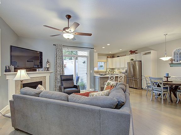 Centrally located move in ready townhome. This house lives large with it's open concept great room and engineered bamboo flooring throughout the main floor. The stylishly updated kitchen includes stainless steel kitchen aid appliances, quartz countertops, under cabinet lighting and added pantry cabinetry! Living area features a gas fireplace with blower that heats the space in the winter and a ceiling fan that helps cool in summer, plus this home has forced air heat and central AC to stay comfortable all year round. A sliding door leads to the patio, this backyard is fully fenced and there are no homes behind, which makes for a very enjoyable & low maintenance yard! Upstairs has newer plush wall to wall carpeting and the primary bedroom with vaulted ceiling & fan, attached updated bathroom including a large soaker tub, walk-in tiled shower & walk-in closet with built in shelving. Also two more good sized bedrooms and hall bath. The attached two car garage has extra storage shelving and a workbench. Plus there is a true two car driveway as well. The low HOA includes exterior maintenance, landscaping and management. This is a premium tastefully updated home, close to everything, top rated high school boundary and priced to sell! Blocks away from Luke Jenson Park with playground and walking trails. Open house Saturday 10/11 from 11-1 and Sunday 10/12 from 1-3 Come take a tour!