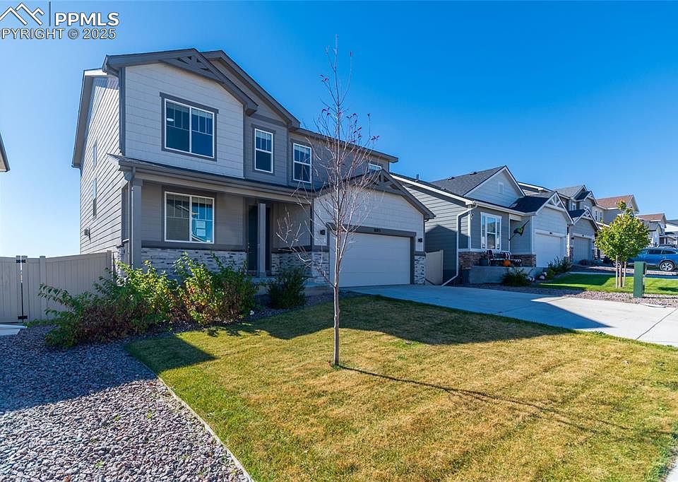 No need to build new - this beautiful 2-story home in SE Colorado Springs awaits new owners! Enjoy the rare, breathtaking views out the back yard, looking out to mountains and open space. There's plenty of room for kiddos and pets to play in the fully vinyl-fenced back yard, as well as entertain and cook on the rear deck directly off of the kitchen. Inside, you love the luxurious granite counter theme throughout, set on upgraded cabinetry. As one of the largest homes built in this neighborhood, there is so much room for everyone to spread out on all three levels! This even boasts a family room on the upper level and the garden-level basement, as well! This home won't last long, so don't wait - come see it today!