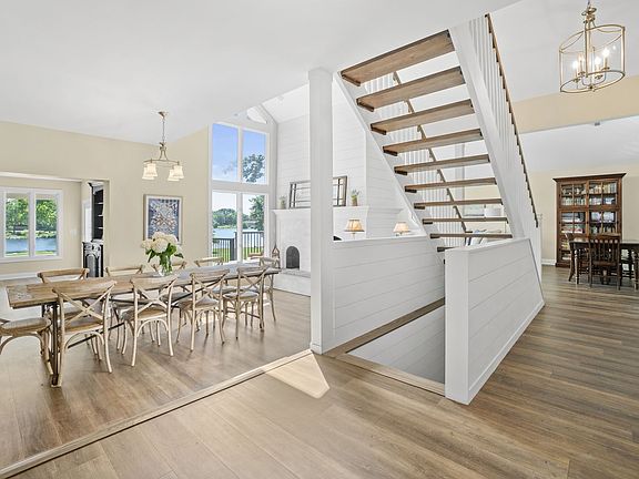 Everyday will feel like a vacation when you wake up in this absolutely breathtaking 5 bedroom, 3 1/2 bathroom contemporary style home nestled on an enchanting lake with nearly an acre of land in idyllic Downers Grove! This truly feels like a brand new home having just undergone a recent renovation encompassing nearly every aspect of the property including an updated gourmet kitchen, luxury vinyl plank flooring and fresh paint throughout, thick bright white trim around all the windows, floors, and doors, two modernized fireplaces with floor to ceiling shiplap accents, and custom plantation style shutters. The vaulted, cathedral style ceilings with exposed wood beams combined with an open floor plan gives this home an unmistakable modern feel while large, tall windows provide an extraordinarily stunning view and an abundance of natural light when paired with multiple skylights throughout. The awe-inspiring chefs kitchen features timeless white cabinetry with a subway tile backsplash, gorgeous quartz countertops, high-end stainless steel G/E Cafe appliances, a large center island with room for seating, a touchless kitchen faucet, recessed lighting, and plenty of counter space. The central dining room is the perfect space to entertain guests or host the holidays and features a cozy see through fireplace. Unwind after a long day or enjoy your morning cup of coffee in your comfortable family room with a second fireplace and a view that would make even The Hamptons jealous! The main level also features a desirable first floor bedroom, which can alternatively be used as a convenient office space or playroom, as well as a powder room so guests won't need to traipse upstairs to use the restroom. The floating staircase leads up to a spacious master bedroom featuring an accentuated trey ceiling, balcony overlooking the beautiful lake, and an en suite master bathroom complete with dual sink vanity, whirlpool tub, step-in shower, skylights, and a huge walk-in closet with its own separate washer and dryer. Upstairs you will also find a second full bathroom as well as the 2nd, 3rd, and 4th bedrooms which are also a great size with plenty of closet space and the 2nd bedroom even features an additional loft area with skylight. From the main floor head down the shiplap accented staircase to the finished walk-out basement with a second family room, a recreation room perfect for an at home gym, a third full bathroom, a second laundry room, and a large storage space with its own exterior access. The backyard of this home is truly a sight to behold! Step outside to your own secluded oasis featuring an inground swimming pool surrounded by a new wrought iron fence, your own private pier with water rights to the lake, a storage shed with electricity, an irrigation system, and an enormous, newly constructed, multi-level deck that extends the entire length of the home and is mostly covered by an extension of the roofline complete with cedar highlights and RGB remote outdoor lights! Other exterior improvements include all new low maintenance vinyl siding on the entire home, 2 brand new AC units, 2 brand new water heaters, all new pump and filtration system for the pool, and a newly covered front porch. The attached 2 car heated garage means no fuss with snowy cars come winter time. Garage heater is also brand new! The extended driveway is re-sealed every year and provides a ton of additional room to park for large get-togethers. This home is perfect for those who like to stay active during the cold winter months on the lake with ice fishing, ice skating, and ice hockey while the warm summer months provide an opportunity for canoeing, kayaking, more fishing, and even boating with a trolling motor. The Bruce Lakes HOA also provides year round planned community events including a 4th of July parade and access to a private park with sand beach, picnic facilities and a playground for the enjoyment of the residents. They even stock the lake each year with fish!