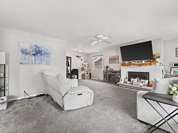 Charming and move-in ready! This ranch has been freshly painted and features new grey vinyl flooring throughout to complement the newer grey carpeting, creating a cohesive, modern look. The home offers a spacious living room with a gas fireplace, a large kitchen with stainless steel appliances, and plenty of cabinet and counter space. Down the hall, you'll find three comfortable bedrooms, a remodeled half bath in the primary suite, and a main-floor laundry room for added convenience. Enjoy the 3-seasons room overlooking the private backyard that backs up to a wooded lot--perfect for relaxing or entertaining. With recently serviced mechanicals, updated landscaping, and more improvements already done, this home is truly ready for you to move in and enjoy!