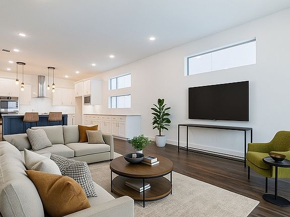 Built in 2022 and located in Merion at Midtown Park , this thoughtfully designed 3-story home offers modern comfort and a smart layout. The top-floor primary suite features a spacious walk-in closet and electric shades for added convenience and privacy. Two additional bedrooms are located on the first floor—ideal for guests, family, or a private office setup. The main floor is all about everyday living and entertaining, with an open-concept kitchen, living, and dining area. The kitchen is upgraded with an accent-painted island, coffee nook, stylish pulls, and pendant lighting that tie everything together. Additional upgrades throughout the home include electric shades in the living room, office space, and one guest bedroom, with non-electric shades in the second guest room. Ceiling fans in both guest bedrooms and upgraded light fixtures in all bathrooms add comfort and style. Whether you're hosting or relaxing, this home blends modern features with functional design across every floor.