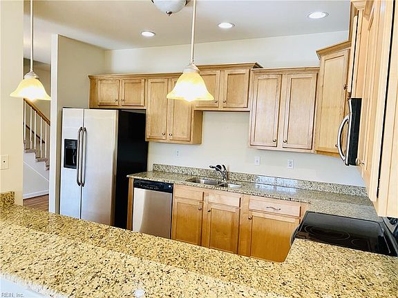 Private Community near East Beach tucked away just minutes from Gate 1 Little Creek. Spacious 3 bedroom, 2.5 Bath with GARAGE Home. Private fenced in back patio. Welcoming bright and open floorplan in living and dining areas, updated kitchen with granite countertops, stainless steel appliances, flat top stove and pantry. LVP flooring throughout, carpet upstairs in bedrooms. Vaulted ceilings in living area and Primary Bedroom. The HUGE Primary bedroom features Vaulted ceiling, 2 Large closets, Primary bathroom, custom size windows and second floor balcony for quiet and private relaxing. Spacious Halls up and downstairs and Foyer provide additional mixed-use space for desk or storage. Close proximity to East Beach, Chic's Beach, Shopping and Interstate.