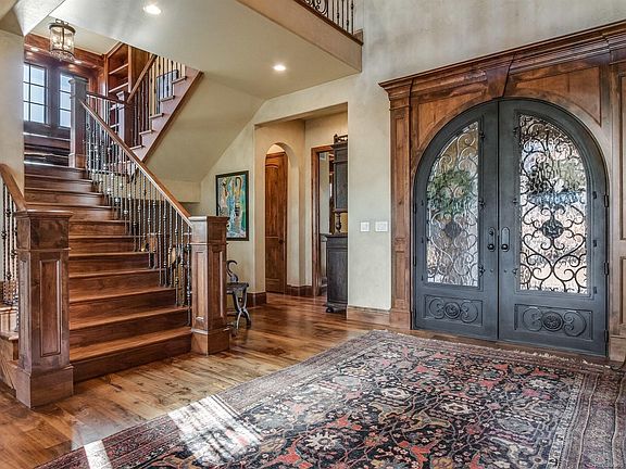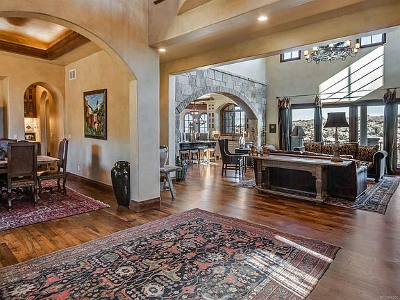 Exquisite Tuscan style 2-story home with a main floor master suite and an additional main floor bedroom with private bath. Walnut and stone floors, exceptional views, custom cabinets throughout, dual staircases! Fabulous kitchen with Wolf, Sub Zero, Asko appliances! Gorgeous slab granite counter tops! Breakfast room with beautiful views! Great room gas fireplace (could be wood burning)! Private master suite with fireplace, fabulous bath! Butler's pantry with wine cooler/rack! Beautiful ceiling detail throughout! 6 bedrooms, ensuite baths, study, finished basement! Wet bar, rec room, media room/hobby room! Outdoor built-in gas grill! Hot tub! Located in the beautiful Ravenna, gated subdivision!