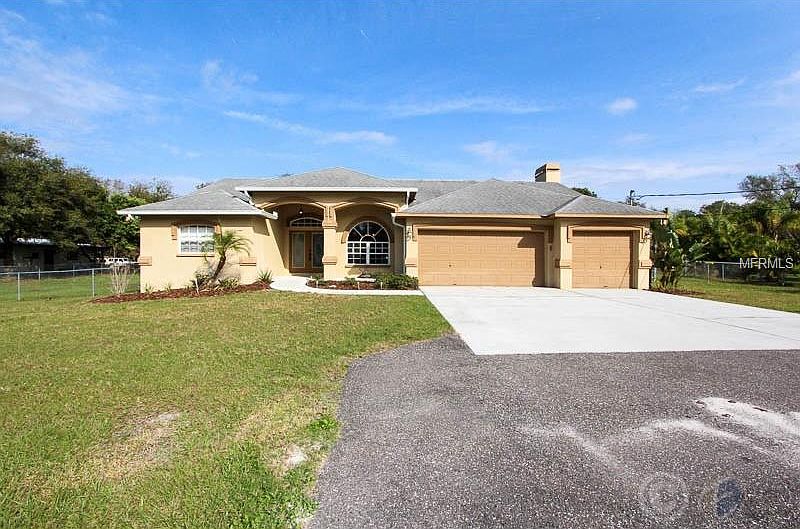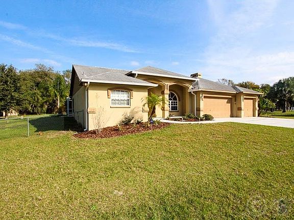 Enjoy charming suburb living on over an acre of land! This home is in excellent condition and is loaded with high-end features! The kitchen features travertine counters and breakfast bar, stainless-steel appliances, a double-drawer Kitchen-aid dishwasher and up-lit plant shelves highlighting the vaulted ceiling. The family room includes a cozy wood-burning fireplace and designer ceiling-fan to compliment any decor. An oversized laundry room includes a front-loading, high-efficiency washer and dryer, plus plenty of cabinet storage and counter space, plus a laundry sink. The master bath features a garden tub, separate walk-in shower, separate vanities, and two walk-in closets. The covered, screened lanai overlooks the free-form saltwater pool, complimented by a standalone spa, great for outdoor entertaining! A whole-house intercom system is wired to each room, including the lanai for music throughout the house and this home includes its own well and septic system plus a water softener, so there is no water bill to pay! This home won''t last, call for a private showing today!