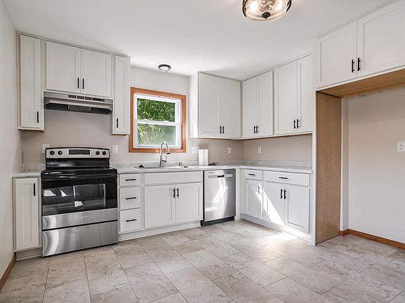Cute, and completely remodeled - ready to move right in! 4 bedroom 1.5 bath ranch home with fully remodeled kitchen and baths. Freshly painted interior, new lighting, carpet and LVT flooring, plus original hardwoods in the bedrooms. New roof and gutters, New AC, New electrical panel, New landscaping, New windows... all done in 2025.Spacious 2.5 car garage, plus large, mostly fenced in backyard.Basement work/beams completed in Spring of 2025. The basement is unfinished, but freshly painted and clean, with lots of space for your finishing ideas!