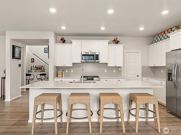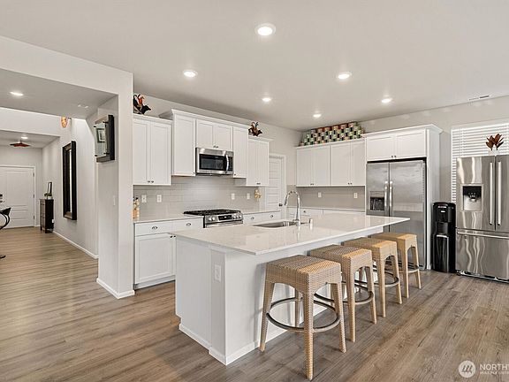 Like-new 2024 two-story home in Chandler’s Reserve offering 3,245 sq. ft. on a 6,970 sq. ft. lot with 3-car garage and greenbelt privacy. Multi-gen floor plan includes a private suite with separate entrance, living room, kitchenette, bedroom, bath & laundry. The main home features open concept living/dining, vinyl plank floors, quartz counters, and stainless appliances. Upstairs offers 3 bedrooms and a versatile loft. Added details include window blinds, ample natural light, and thoughtful built-in storage. Stanwood, known for its small-town charm, sits along the Stillaguamish River near Port Susan and offers outdoor recreation with convenient proximity to I-5 for commuting.