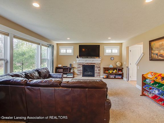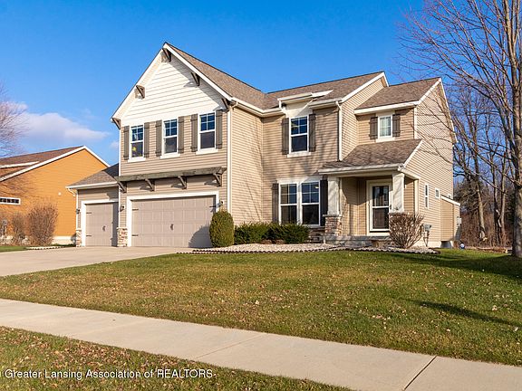 Gorgeous 5bd 3.5ba home with Grand Ledge schools is ready to be yours! Foyer with cozy bench nook welcomes you in the stunning living area with gas fireplace, and wall of windows. Spacious open floorplan perfectly combines kitchen & dining. The kitchen showcases tile backsplash, island, pantry, & stainless steel appliances. Bonus front room creates the perfect space for an office/study or convert to formal dining. Owner's retreat offers large walk-in closet and bathroom with dual sink vanity. Three minor bedrooms with large closets are serviced by full hall bath & bonus loft area. Best feature of all- 2nd floor laundry room! Full finished basement features wine room, bonus living room, bedroom & newly remodeled full bath. This home is like a new build- but comes with playset, patio, & professional landscaping- garden beds- and sprinkler system, Immaculately maintained & attention to detail throughout, this home is a must see!