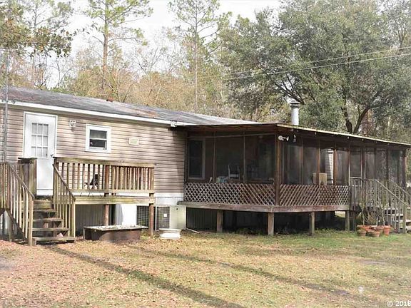 Get away from it all and watch wild life in your very own back yard. This well-kept 4/2 doublewide with separate family room includes a large 12 ft x 28 ft screened back porch, sits on 10 acres of land, partially cleared with a portion completely fenced around the home. A spacious living room with wood-burning fireplace and sliding glass door leads to the extra-large screened back porch covered with a metal roof; shingle roof over the entirety. Kitchen includes formica countertops, wood cabinets and breakfast bar. From the kitchen to the master, a separate family room leads to the master bedroom featuring a garden tub bath with his and her vanities and separate shower. All windows have been updated with double insulated panes. Property also includes a reverse-osmosis system in kitchen, two sheds and a chicken coop. This property sits at the end of the road. Convenient to Gainesville and Alachua. Bring offers!