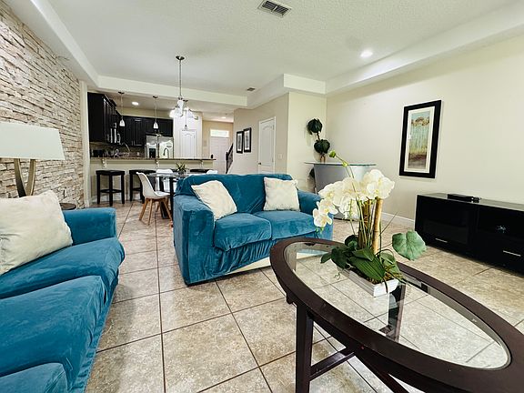 Take a look this gorgeous fully furnished Townhouse at champions gate. Just 15 minutes from the Disney parks with all attractions, including the nearby championship golf courses, swimming pool, dining, spa treatments and more. The clubhouse has a fitness center and there is a beautiful large community pool. The great kitchen features stainless steel appliances, granite countertops, All 3 bedrooms are on the second floor, with each including excess storage space and natural lighting, so everyone will feel right at home. There is plenty of room for both living and dining in the large family room with large sliding doors leading to a covered patio and private backyard. There are both washer and dryer on the second-floor landing near all of the bedrooms for convenience which are hidden behind double doors. Schedule a tour today! The rental fee include Internet, HD cable TV, and Amenities access . Easy parking, street and public. The renter is pay electricity and water. No smoking, small pet allowed. The community doesn't offer mailing service, the tenant shall open their P.O box. All furniture need stay, tenant could put some in the car garage if no need.