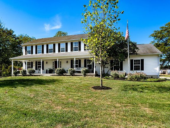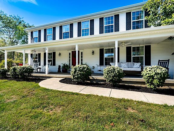 Welcome to your Country Retreat! This beautiful 5-BDRM, 4-BA Farm Home sits on 2+ acres of picturesque land w/ stocked pond, greenhouse, and chicken coops perfect for anyone seeking a peaceful rural lifestyle with modern comforts. Step onto the lrge Front Porch and take in the serene views before entering a home filled with Hrdwd Flrs thru-out and warm, inviting spaces. The Eat-in Kitchen features Granite countertops, Island, stylish Backsplash, and a Walk-out to Patio and Fenced-in Yard, ideal for entertaining or simply relaxing outdoors. The Finished LL offers flexibility with Kitchen amenities, Full BA, Rec room, and abundant storage - great for guests or spending time with Famly/Frnds. The Primary Suite incldes adjoining nursery or 5th BDRM, providing comfort and convenience. Outside you'll find evrything you need: 32' x 24' Pole Barn, Grnhouse, Chcken coops, and 2-car Ovrsized grge. Finish LL appx 900sq ft, all measurements apprx; shared apron drive w/ neigbr.
