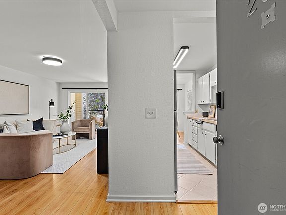 Top-floor corner 1BR/1BA condo just minutes from downtown Bellevue and I-405. Light-filled living room with wood-burning fireplace, dining area & private balcony. Features in-unit washer/dryer, secured entry, and one assigned parking spot. Special assessment fully paid, covering extensive exterior renovations including new roofs, balconies, siding, paint, piping & more. Community amenities include an outdoor pool, fitness center & clubhouse. Convenient location close to shopping, dining, parks & the upcoming light rail.