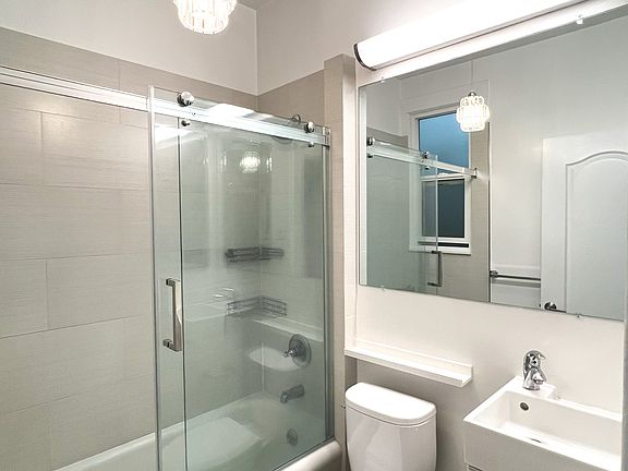 The modern kitchen is equipped with updated cabinetry, sleek countertops, and stainless steel appliances ideal for everyday living and entertaining. The bathroom has been tastefully renovated with contemporary finishes, creating a clean and comfortable retreat.