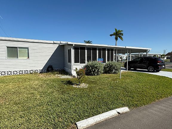 Just listed is this 2-bed 2-bath located in 5-Star Vista Del Lago. LOW LOT RENT: $709 a month and includes water, trash removal, and mowing. This home is move-in ready and waiting just for you! The home has a brane new carport with two additional storage sheds. A beautiful, screened lanai overlooks the driveway and street. The home is lined with new vinyl plank flooring throughout. The living room and dining room are massive, perfect for a kitchen table and a couch. The kitchen includes two new stainless-steel appliances, a stove and a fridge. Ample amounts of counterspace and new cabinetry. The master bedroom is spacious and even has a walk-in closet. The master bathroom also has a tiled shower. The home comes with a washer/dryer in the outdoor shed. Central air is a must, and this home has it! This 55+ community has resort style amenities, that include a heated pool, a clubhouse with billiards tables, shuffleboard courts and weekly community events.