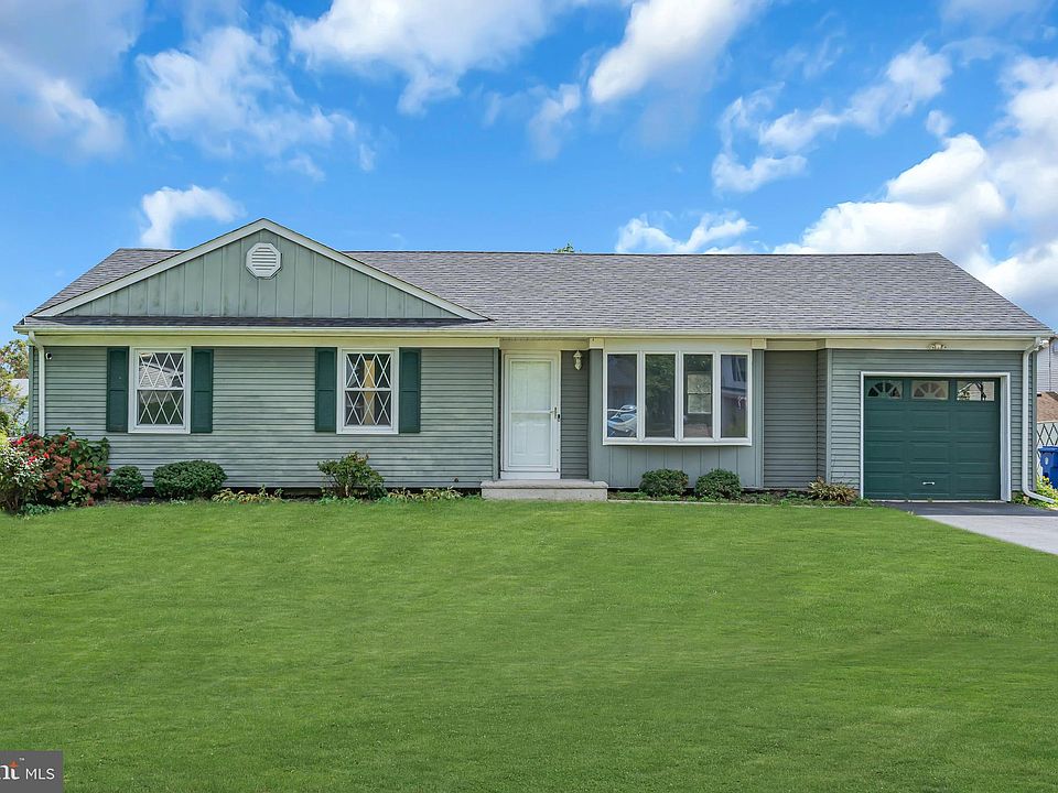 This charming 3-bedroom, 2-bath Ranch is nestled at the end of a peaceful cul-de-sac and is ready for its next owners! The eat-in kitchen, complete with stainless steel appliances and a pantry, overlooks the backyard. The bright and sunny living room boasts newly installed carpet, while the dining room, family room, and two of the bedrooms showcase new luxury vinyl plank (LVP) flooring. The nice sized primary bedroom offers its own attached (and UPDATED) full bath with a tiled shower and floors. There is a laundry/utility room with shelving and convenient access to the attached garage. Recent updates enhance the home's appeal: a NEWER Roof (approximately 6 years old), and a NEWER gas Furnace and Central AC system (both approximately 4 years old). Enjoy the outdoors with a door leading from the family room to a large deck and a spacious backyard. The oversized driveway accommodates up to 4 cars. Freshly painted with neutral tones. Located in a sought-after neighborhood with sidewalks and tree-lined streets, this property is just minutes from beaches, parks, the boardwalk, shopping, and restaurants. *Room measurements are approximate. Please note that grass has been photo enhanced for marketing purposes.