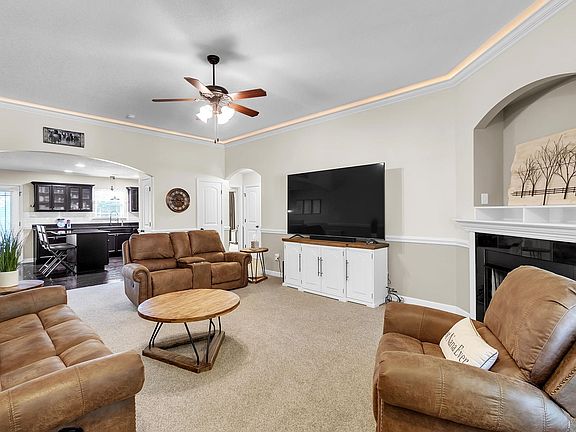 - Ceiling Fan(s), Tray Ceiling(s), Attic Stairs Pulldown, Fireplace, Ceiling - Smooth, Solid Surface Counters, Open Floorplan, Split Bedroom Plan