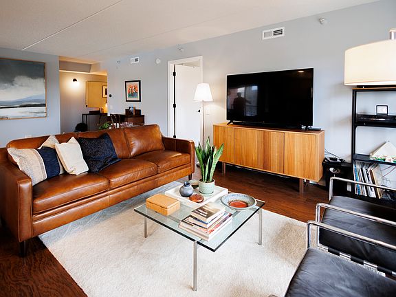 Open-concept large contemporary condo for rent in Evanston's vibrant Main-Dempster Mile. Bright and sunny, heated floors, central air, and heated garage parking included! Unit features 2 bedrooms, 2 full baths (1 ensuite), generous closet space, hardwood floors, granite counter kitchen with new LG range, microwave, French door fridge, and Bosch dishwasher. In-unit laundry too! Enjoy breakfast on your private balcony with north and west views of Evanston. Building has new state-of-the-art secured entry system with camera and phone app interface. One block to Purple Line CTA (Main St.) and Metra stops. Neighborhood includes a dozen restaurants, post office, dry cleaner, pet care, Northshore immediate care, three coffee shops, Hoosier Mama Pie, Sketchbook Brewery, and just 5 blocks to Lake Michigan. Available furnished or unfurnished. Rent includes water and heat. Tenant Pays Electricity. Required non-refundable $150 move-in fee. Private showings by appointment only. Schedule now, you won't be disappointed. The tenant pays for electricity and internet. 18-month lease to start, 12 months thereafter.