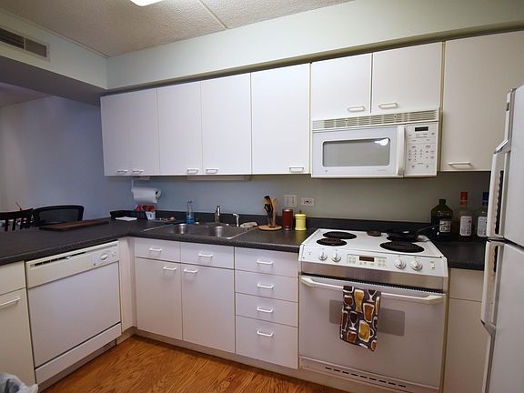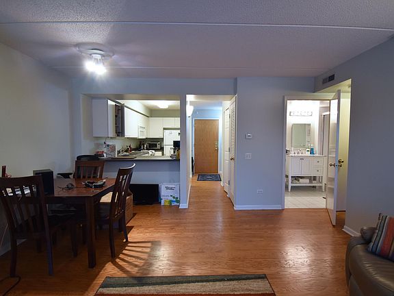 Beautiful, freshly painted 2 bedroom, 1 bathroom condo in a perfect Evanston location with views of Lake Michigan from a private balcony off of the living room! Hardwood floors throughout perfectly decorated home. Large, open kitchen with breakfast bar. Spacious living room with gas fireplace. In-unit washer and dryer. Tons of closet space. Big master bedroom with a huge walk-in closet. 1 parking spot and private storage in heated attached garage included. Steps from Metra, Purple Line, Northwestern University shuttle, Lake Michigan, Main Street shops, restaurants, Whole Foods and Trader Joe's. This is a must see! Renter responsible for gas, electric and cable